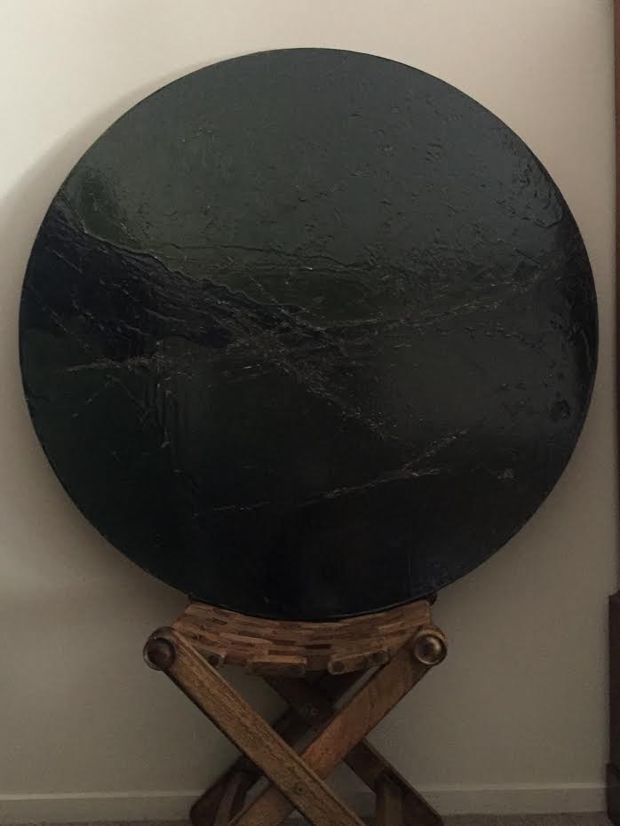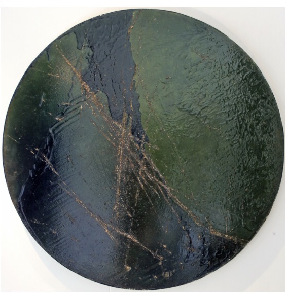 Mixed Media on Board with Metal Edge.